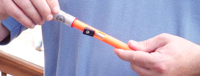 White handhelds are primarily used by the recreational boater to meet the requirements of offshore regattas, for practice (it’s legal to practice with a white flare, but not a red flare) and to signal a warning of imminent danger. Both models use the same design as their SOLAS red handheld counterparts. We did find that the color variation between the products interesting with the Orion more yellow in appearance then the Pains Wessex model. Both models produced a considerable amount of smoke. With our test on a calm day the smoke did affect the visibility of the flare from shore, though it was easier to tell that a flare had been lit. Neither of these models are SOLAS or USCG approved.