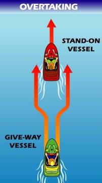 Any vessel overtaking any other vessel must keep out the way of the vessel being overtaken. The former is the give-way vessel and the latter is the stand-on vessel.